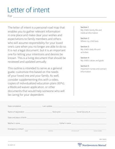 A living document to detail your preferences for your child's care from our friends at Northwestern Mutual